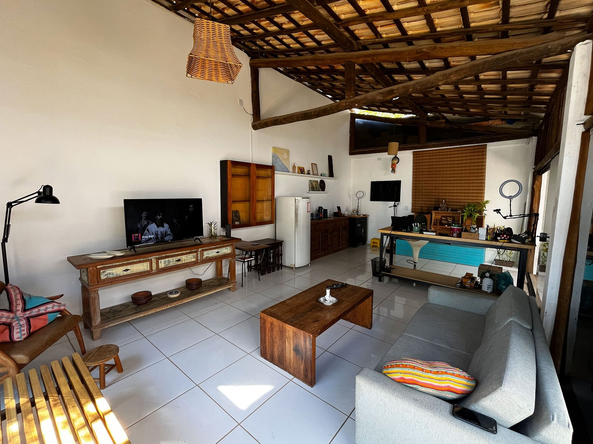 Área de estar com sofá/cadeira